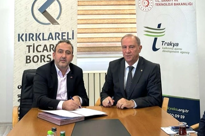 Trakya Kalkınma Ajansı Genel Sekreteri Mahmut Şahin ile Kırklareli Borsa Başkanı Turhan Altıntel, borsada düzenlenen programda işbirliği protokolü imzaladı.