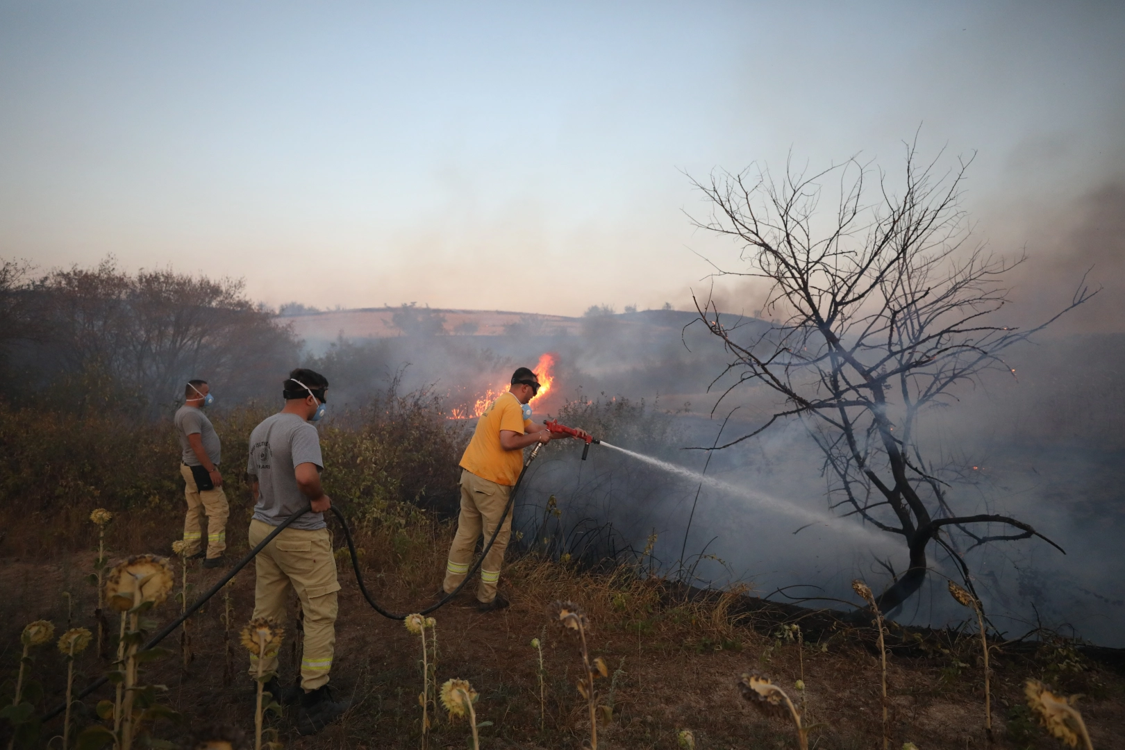 Değirmencik köyünde hasat edilmiş buğday tarlasındaki anız alanda henüz bilinmeyen nedenle yangın çıktı.