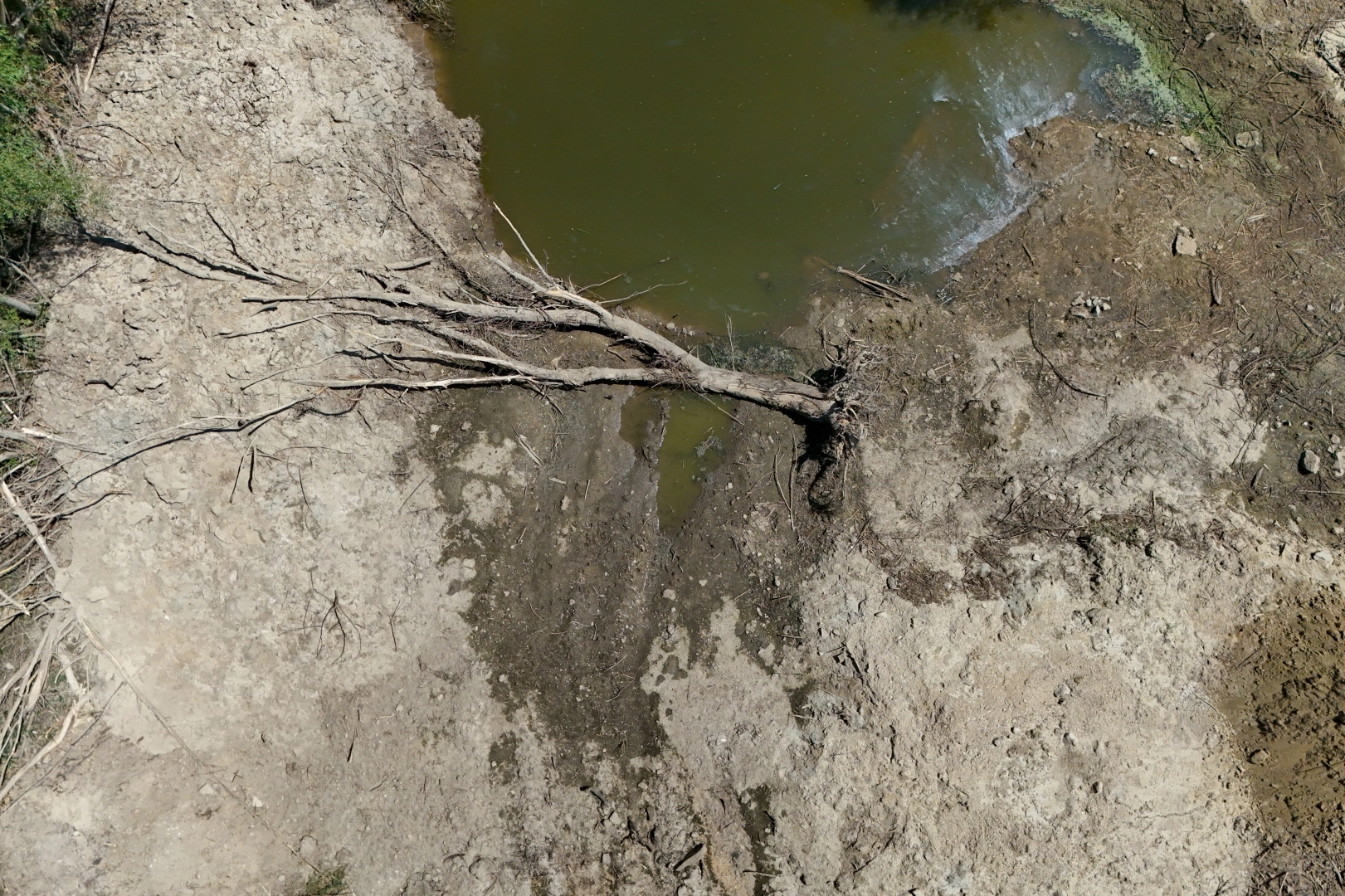 Suyu çekilen dere yatağında çatlaklar oluşurken, derenin bazı bölgelerinde ise otların yeşerdiği gözlemlendi.