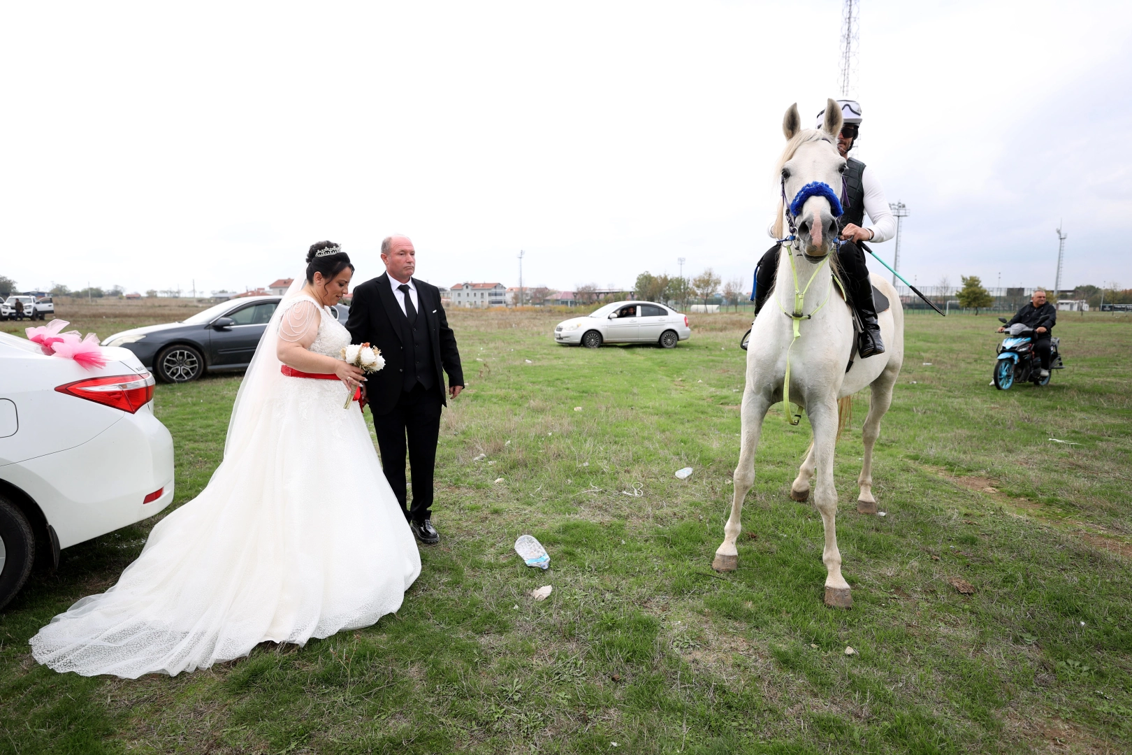 Stat yakınındaki boş arazide oluşturulan alanda "düğün koşusu" düzenlendi.