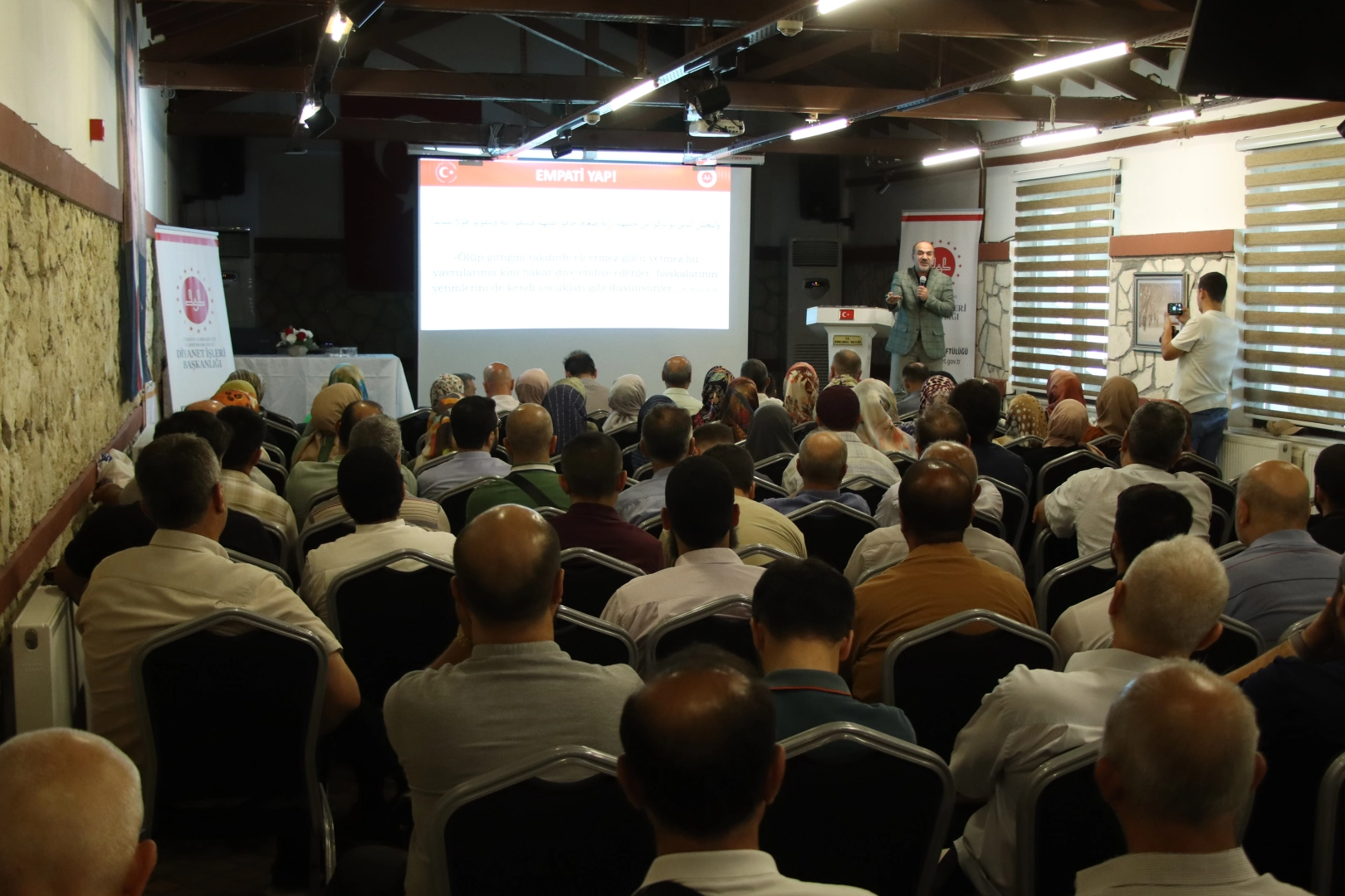 Konferansa Vali Uğur Turan, Aile ve Sosyal Hizmetler İl Müdür Yardımcıları Mehmet Karaman ve Remziye Algın ile din görevlileri katıldı.