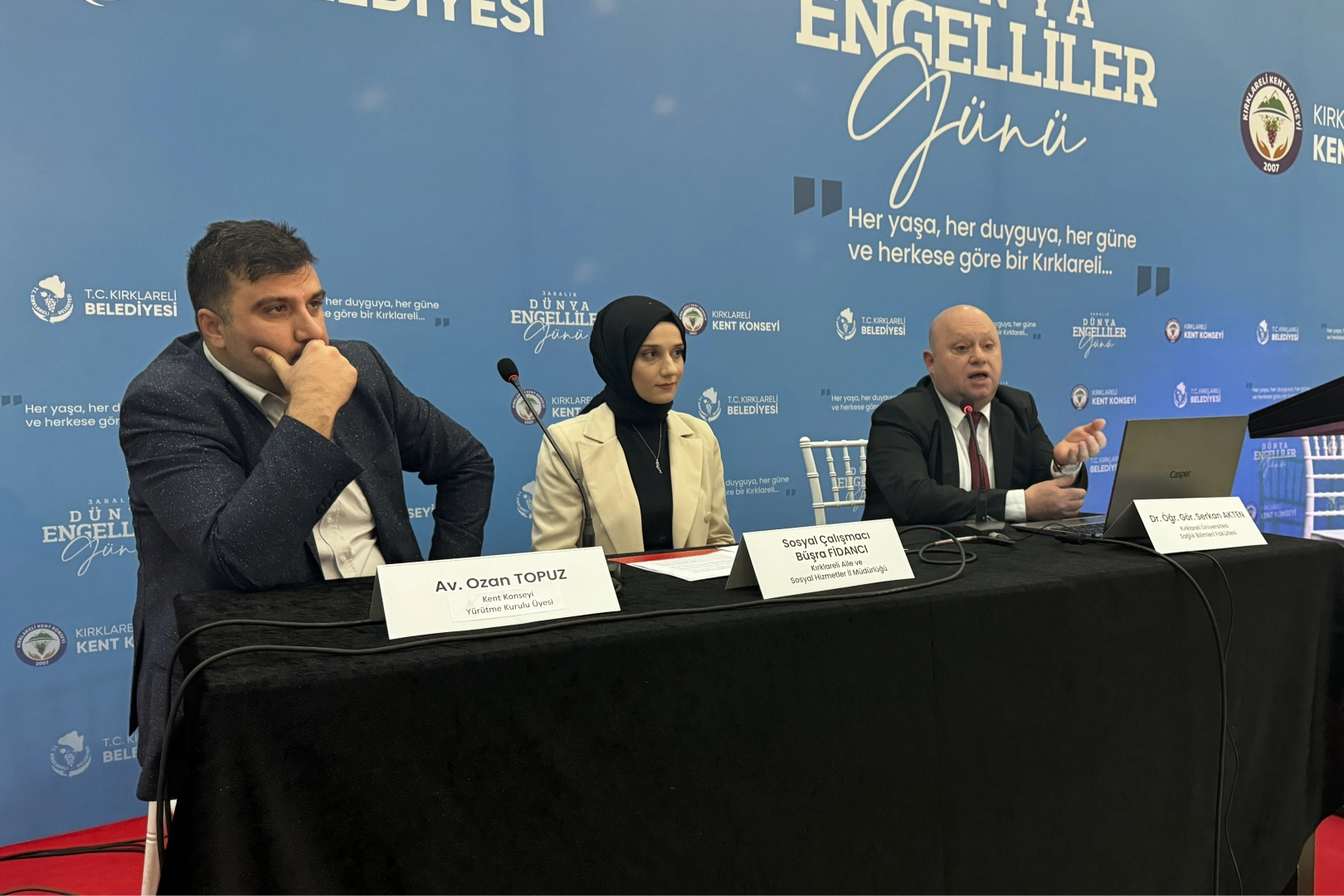 Konferansta Kırklareli Aile ve Sosyal Hizmetler Müdürlüğünde görevli sosyal çalışması Büşra Fidancı ile Kent Konseyi Yürütme Kurulu Üyesi Av. Ozan Topuz da konuşma yaptı.