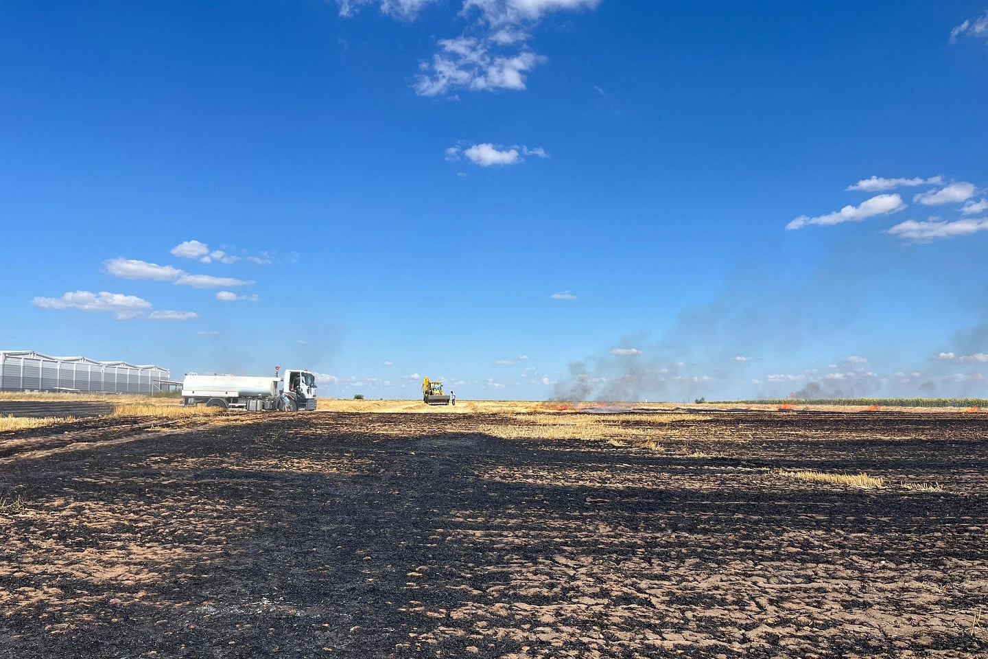 Yangın rüzgarın etkisiyle hasat edilmiş buğday tarlasına sıçradı.