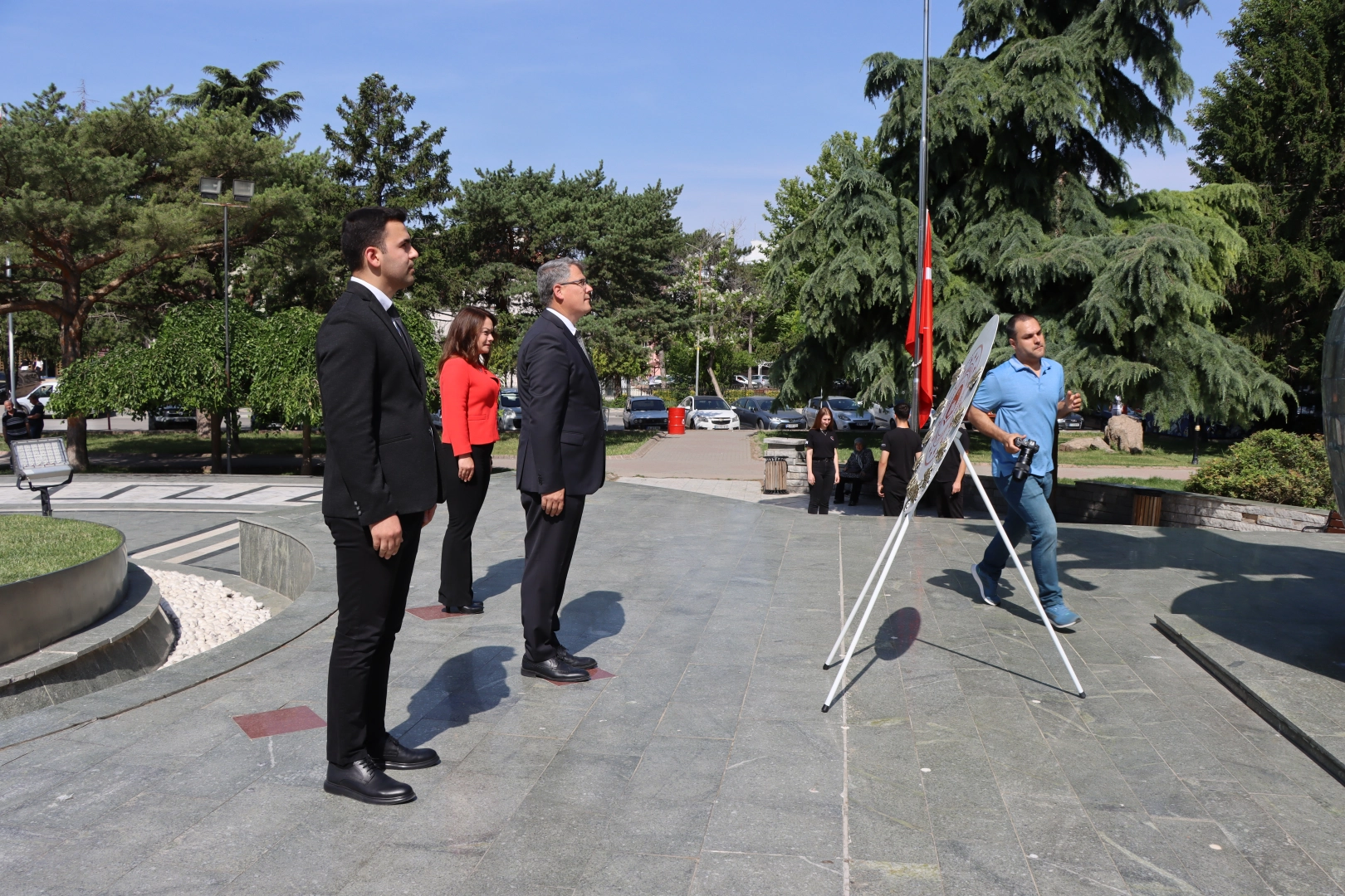 Özgürlük ve Demokrasi Meydanı'nda gerçekleştirilen törende, Çevre, Şehircilik ve İklim Değişikliği Müdürü Ersoy Canbek, Atatürk Anıtı'na çelenk sundu.
