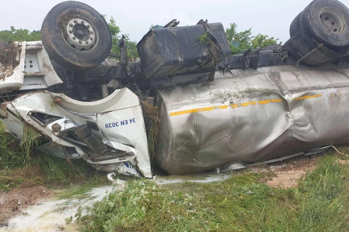 Tankerin taşıdığı peynir altı suyu ise çevreye döküldü.
