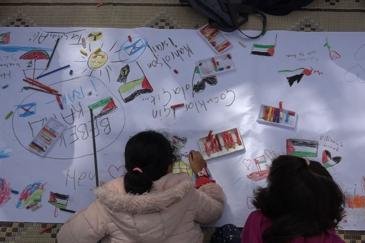 Kırklareli Millet Bahçesi'nde gerçekleşen etkinlikte çocuklar yerlere konulan tuvale, Gazze'ye destek mesajları resmetti. Zeynep Alya, Filistinli çocuklara destek olmak için resim çizdiğini ifade ederek onların sesi olmak istediklerini söyledi. Alya, Gazzeli çocukların evlerinin yıkıldığını, okullarının bombalandığını ailelerinin öldüğünü belirterek, onların sadece hayallerinin yemek yemek, su içmek ve korkmadan uyumak istediklerini anlattı.