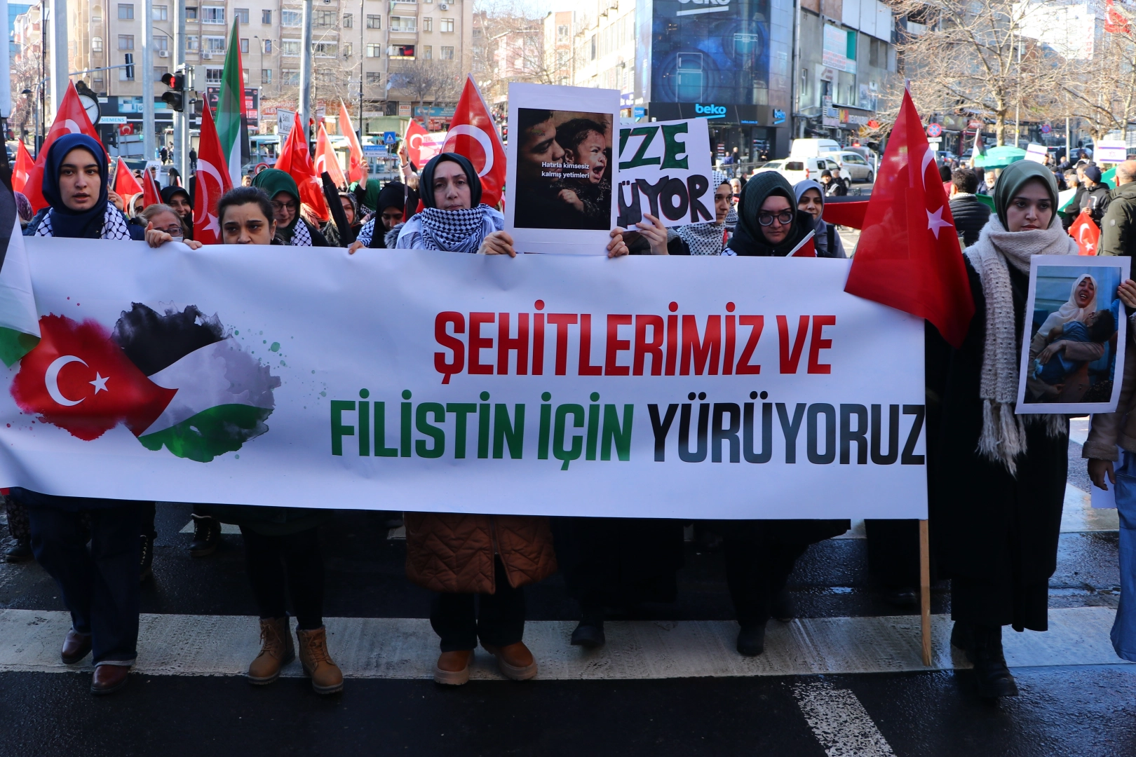 Şevket Dingiloğlu Parkı'nda toplanan grup burada "Soykırıma hayır, Filistin'e destek, siyonizme lanet" pankartı açtı. Genç İHH Başkanı Vahit Alperen Kuş, Irak'ın kuzeyindeki Pençe Kilit Harekatı bölgesinde teröristlerle çıkan çatışmada şehit olan askerlere Allah'tan rahmet diledi. Terörü lanetlediklerini ifade eden Kuş, emperyalistlerin maşası olan hainlerin hiçbir zaman kirli emellerine ulaşamayacaklarını söyledi.