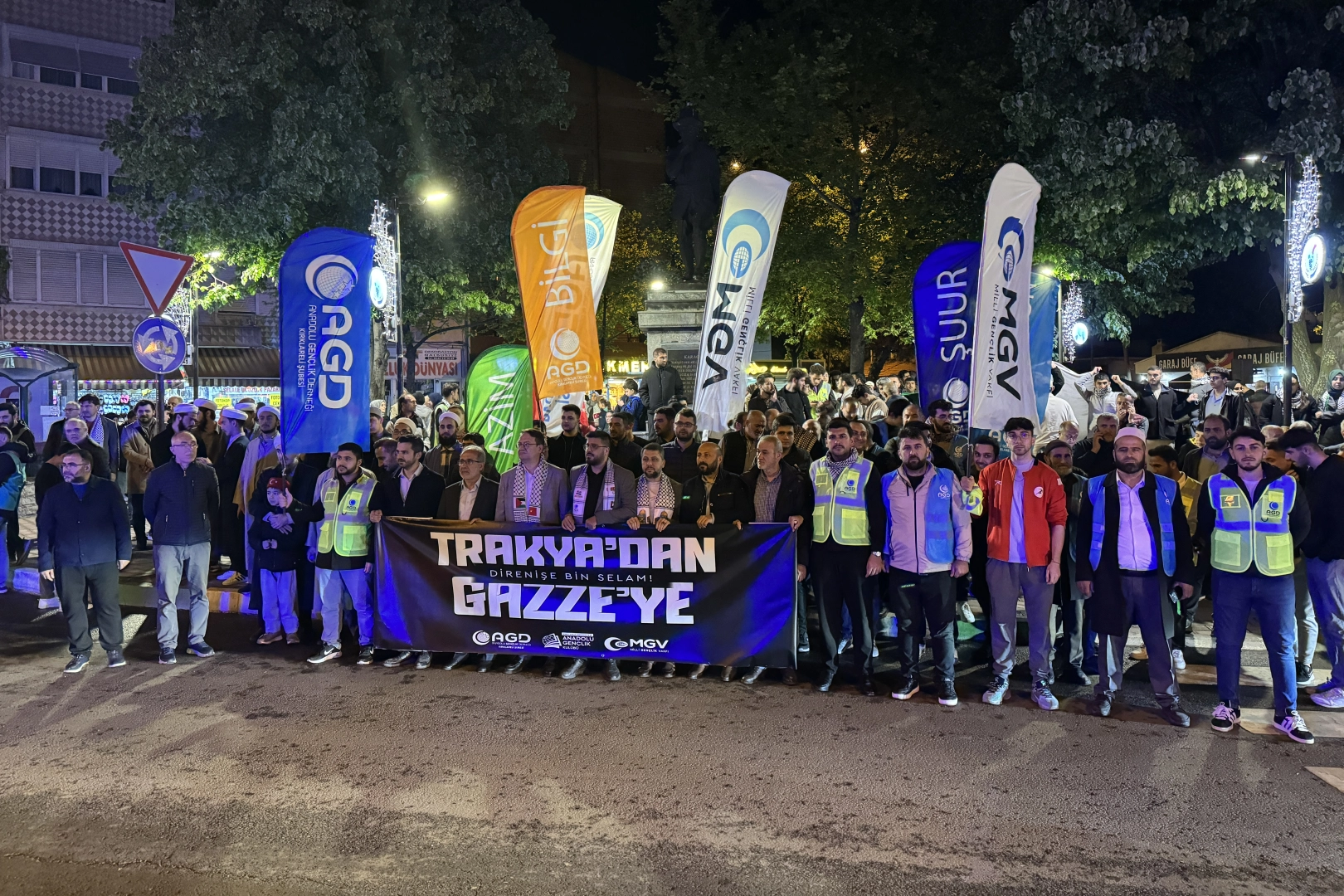 Anadolu Gençlik Derneği Kırklareli Şube Başkanı Ferhat Yıldırım, yaptığı konuşmada, siyonist İsrail'in Gazze'de gerçekleştirdiği soykırımın üzerinden 550 gün geçtiğini söyledi.