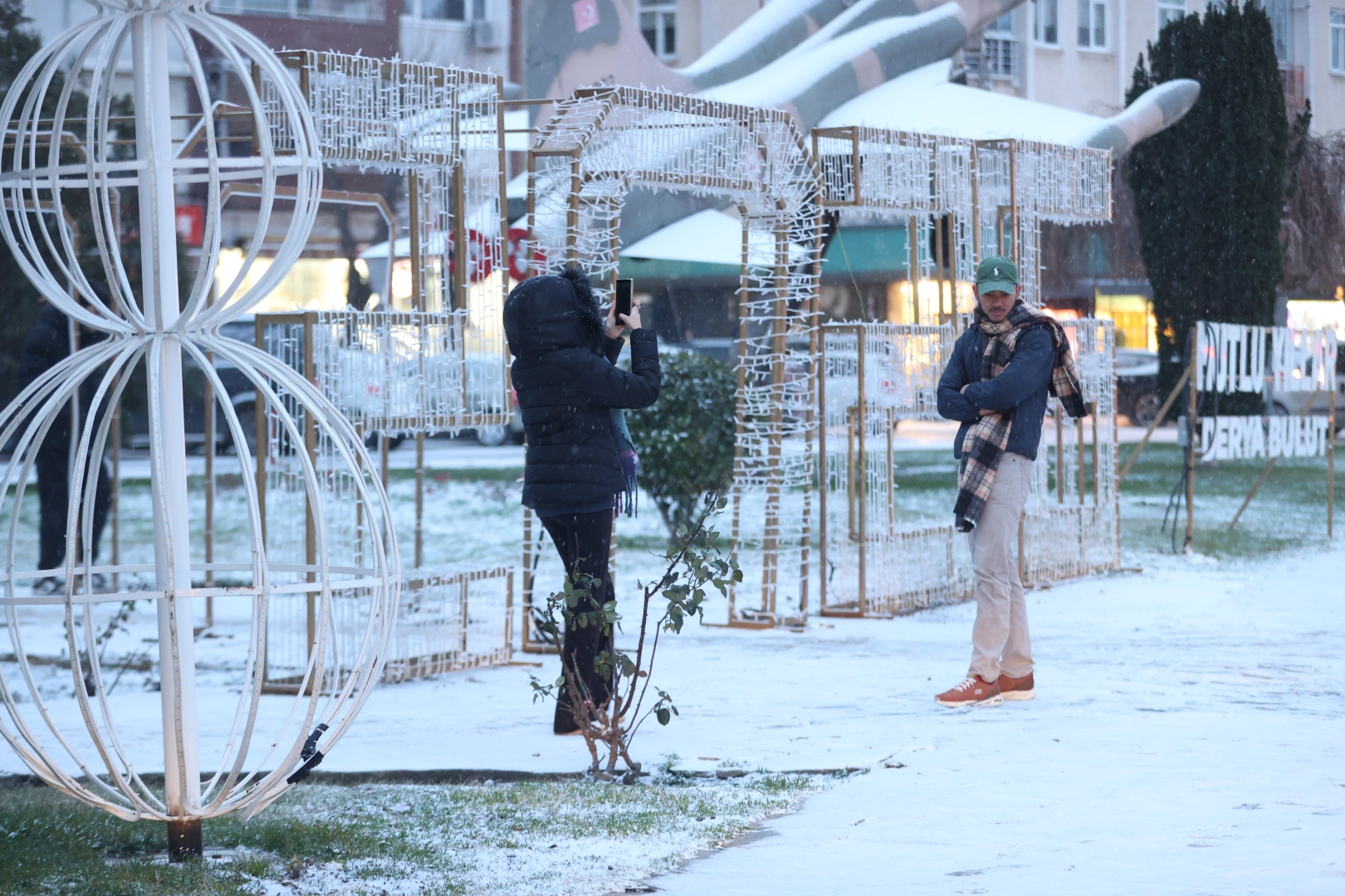 Hissedilen hava sıcaklığının sıfırın altında 7 derece ölçüldüğü kentte kar yağışı etkili oluyor.