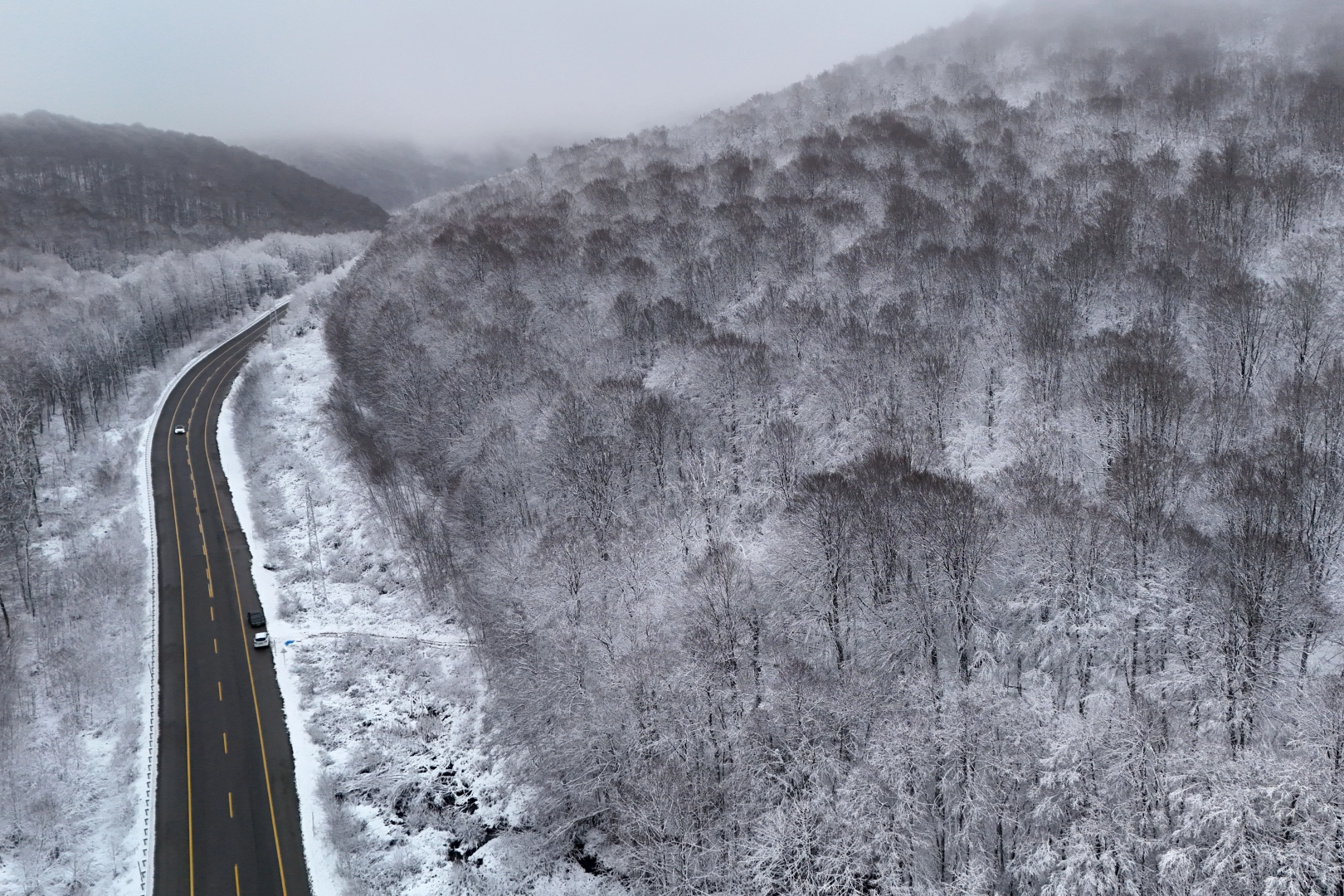 Kar örtüsü altındaki ormanlar dronla görüntülendi.