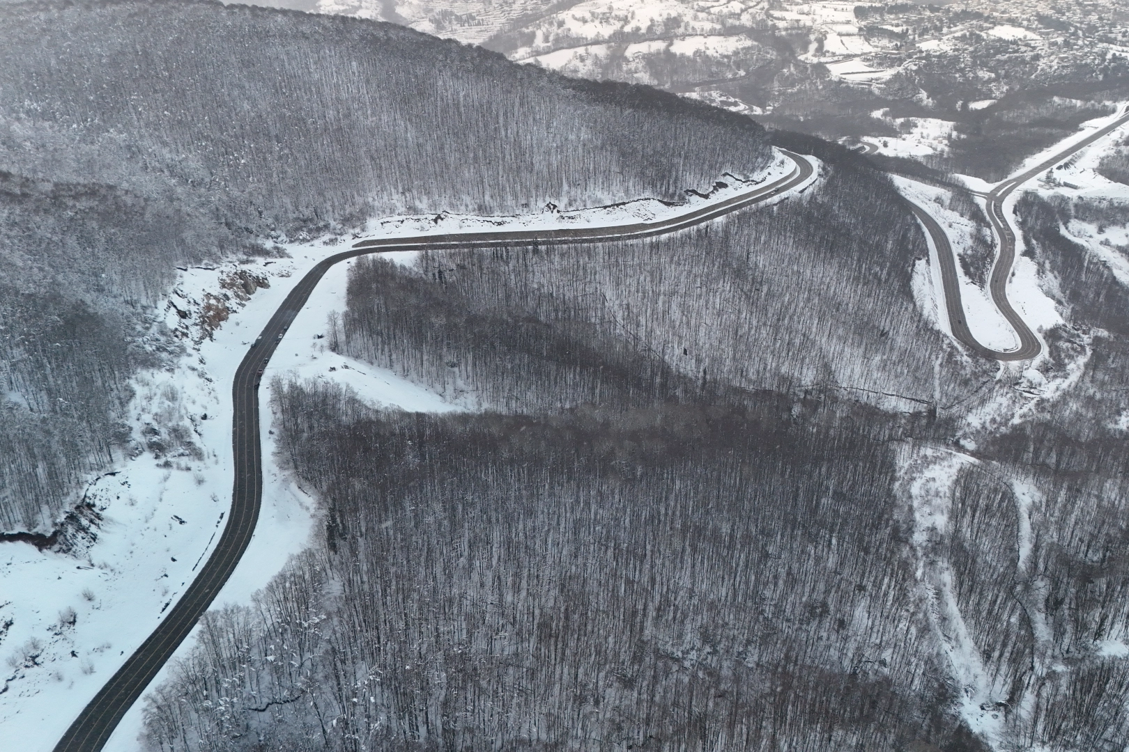 Beyaz örtü altındaki ormanlar dronla görüntülendi.