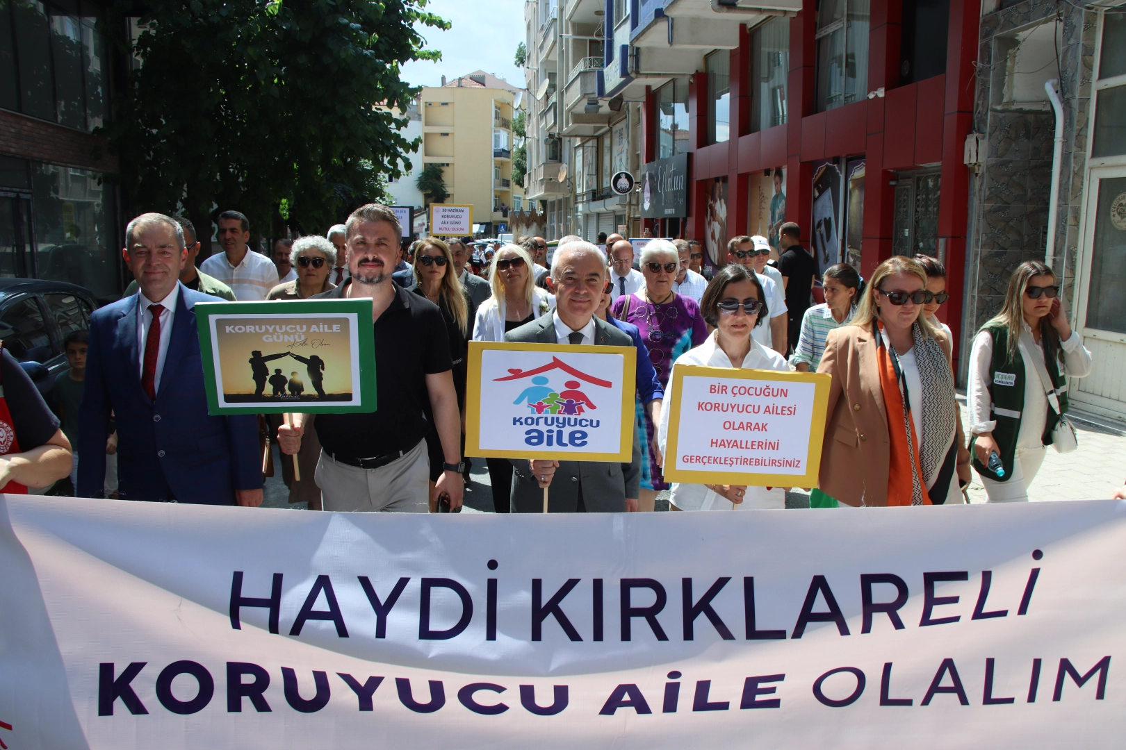 Cumhuriyet Meydanı'ndan başlayan yürüyüşe Kırklareli Valisi Uğur Turan, eşi Nihal Turan, Belediye Başkan Yardımcısı Sabri Çınar, Aile ve Sosyal Hizmetler Müdürü Bilgin Özbaş, kurum müdürleri ve koruyucu aileler katıldı.