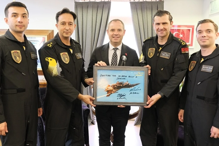 Kırklareli’nin kurtuluşunun 103. yılı etkinlikleri kapsamında düzenlenecek SoloTürk hava gösterisi öncesinde, Kırklareli Belediye Başkanı Derya Bulut, gösteri ekibini makamında misafir etti.