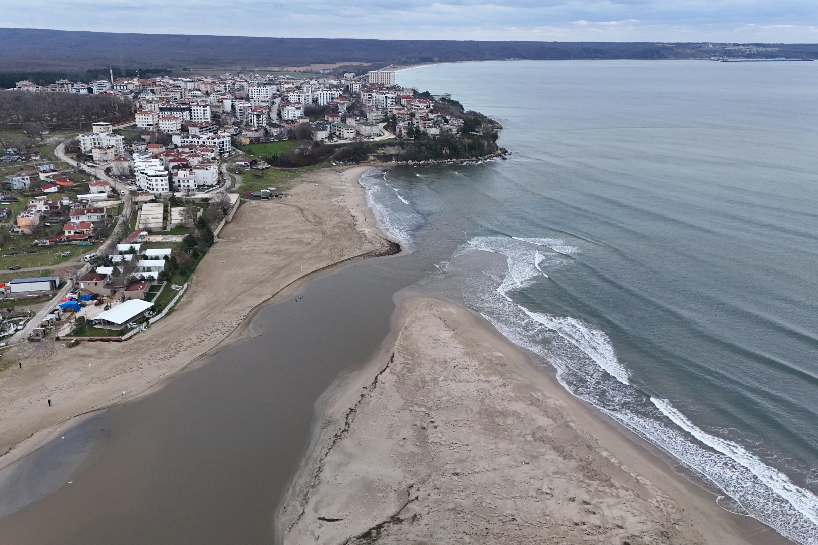 Su seviyesinin artmasıyla birlikte Mert Gölü'nün yeniden denizle buluşması, bölgede bulunanların ilgisini çekti.