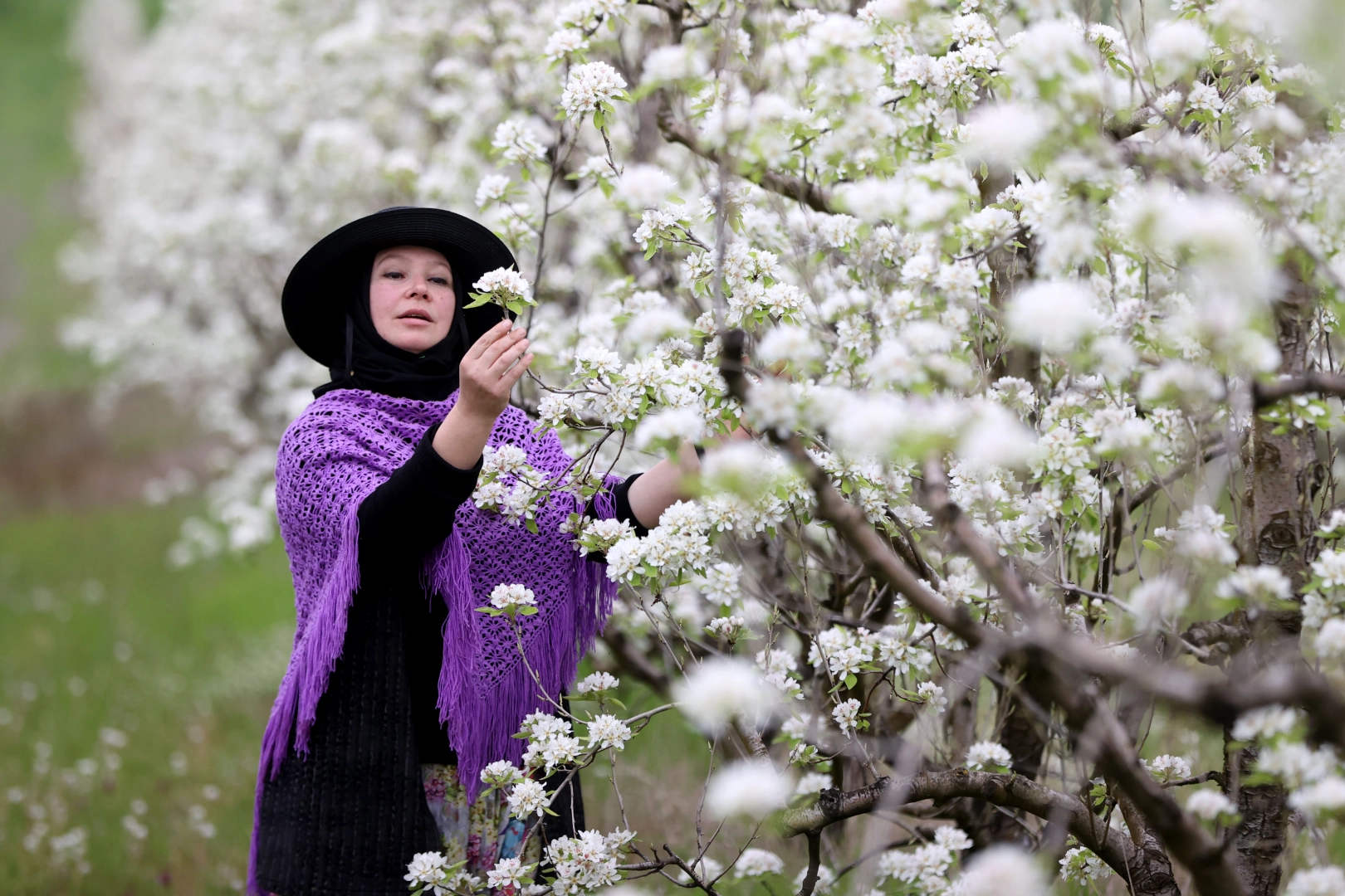 Kuştepe köyünde yaşayan Gülşen Gürses, AA muhabirine, fotoğraf çekmek için çiçek açan armut bahçesine geldiklerini söyledi.