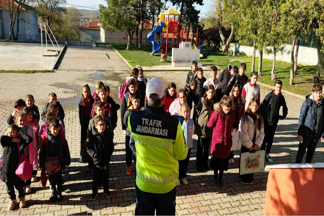 Kırklareli’nde jandarma ekipleri sorumlu oldukları bölgelerde öğrencileri trafik kuralları hakkında bilgilendirdi. Ekipler, güvenli karşıdan karşıya geçiş yöntemleri, genel trafik kuralları, trafik işaret levhaları, trafikte görme ve görülme, yaya geçidinin kullanımı, emniyet kemeri kullanımı, araçlarda güvenli yolculuk, bisiklet ve scooter kullanımı konularında öğrencilere bilgi verildi.
