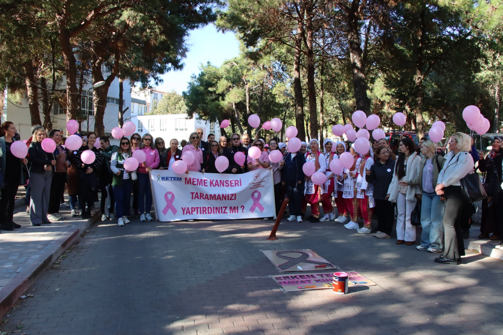 İl Sağlık Müdürlüğünce, gerçekleştirilen etkinlikte müdürlük bahçesi girişine pembe boya ile "Erken Teşhis Hayat Kurtarır" yazıldı.
