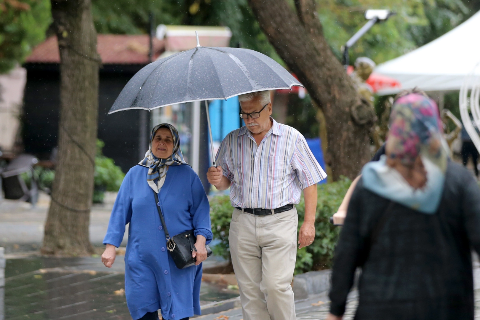 Kentte aniden başlayan sağanak nedeniyle bazı vatandaşlar iş merkezlerinin girişi, dükkanların güneşlikleri, otobüs durakları gibi korunaklı yerlere sığındı.