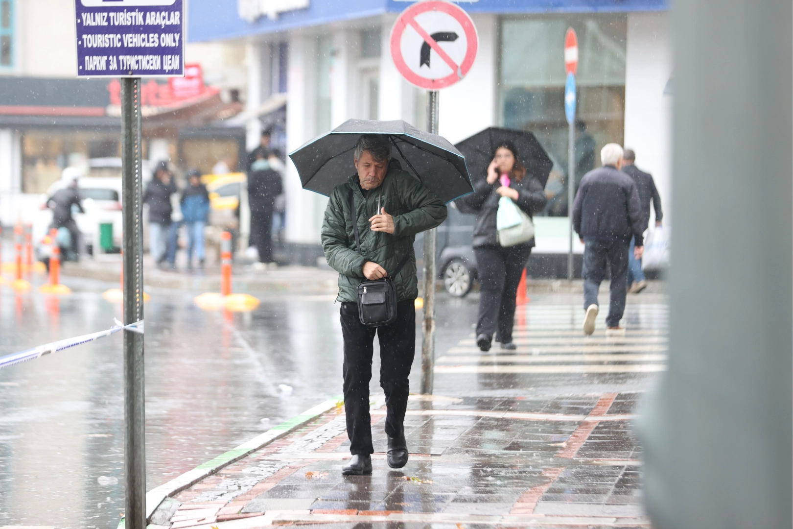 Hava sıcaklığının 14 derece ölçüldüğü kentte, sağanağın gün boyu aralıklarla sürmesi bekleniyor.