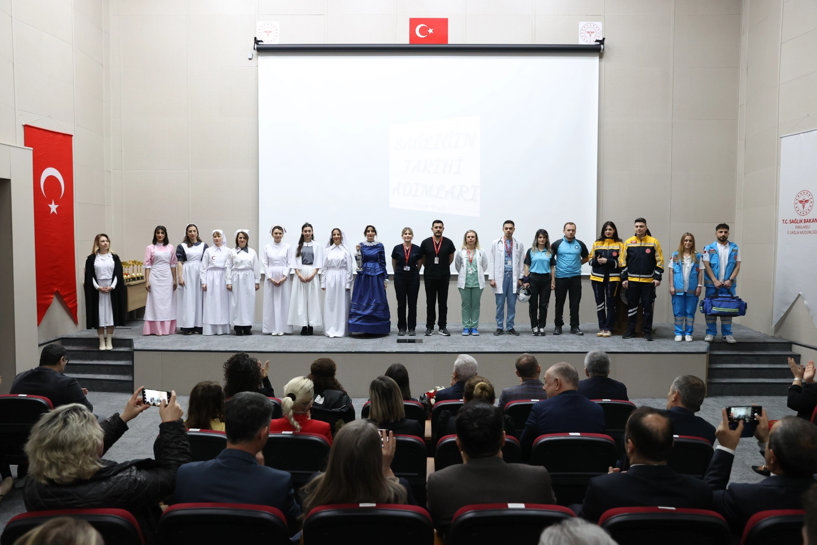 İl Sağlık Müdürlüğü Dr. Mehmet Fuat Umay Salonu'nda gerçekleştirilen defilede, sağlık çalışanları hemşire ve doktor kıyafetlerini tanıttı.