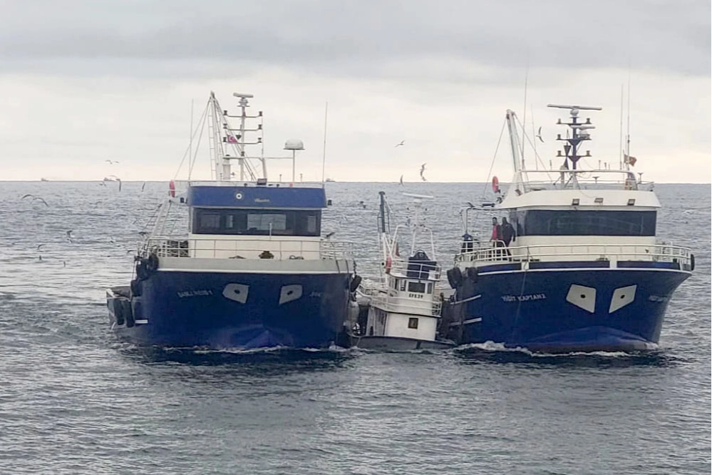 Durumu fark eden balıkçılar, diğer balıkçı teknelerinden yardım istedi. Büyük iki teknenin arasına bağlanan tekne batmaktan kurtarıldı.