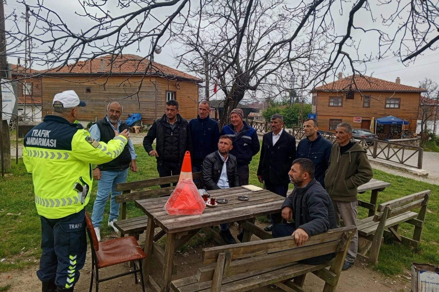 Kırklareli İl Jandarma Komutanlığı ekipleri sorumlu oldukları bölgelerde trafik kazalarının önlenmesi ve trafik güvenliğinin sağlanmasına yönelik köyleri ziyaret etti. Ekipler traktör sürücülerine uyarı lambası ve reflektör bulundurmaları, traktöre en fazla bir römork takmaları ve yük üzerinde yolcu taşımamaları uyarısında bulundu, kavşaklarda geçiş üstünlüğü konusunda bilgi verdi. İl Jandarma Komutanlığından yapılan açıklamada sürücülere yönelik eğitimlerin devam edeceği bildirildi.