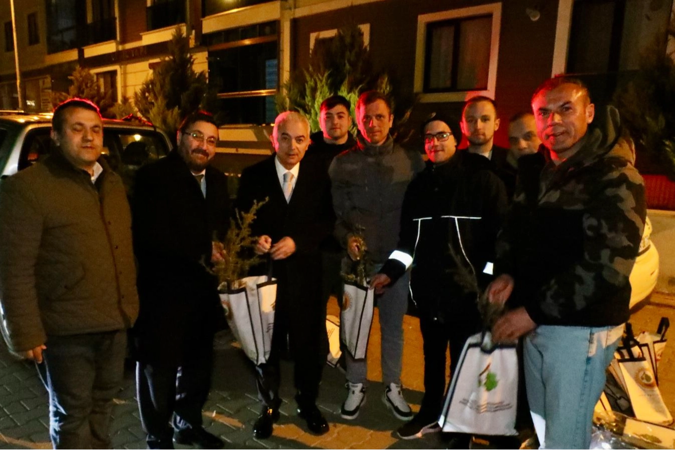 Vali Uğur Turan, Orman Haftası dolayısıyla Ulu Camisinde teravih namazının ardından vatandaşlara fidan dağıttı.