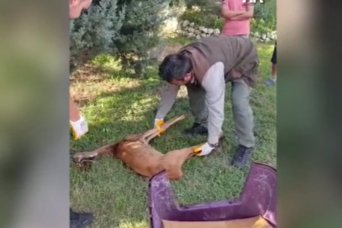 Karaca tedavisinin ardından doğal ortamına bırakılacak.