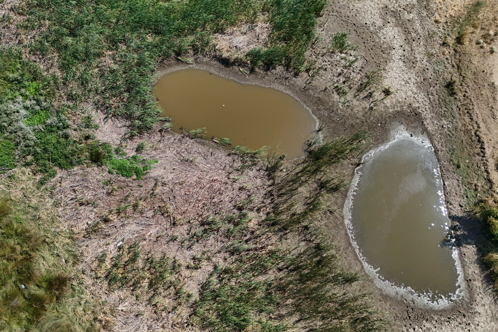 Gölette suyun çekildiği bölgelerde ise çatlaklar oluştu.