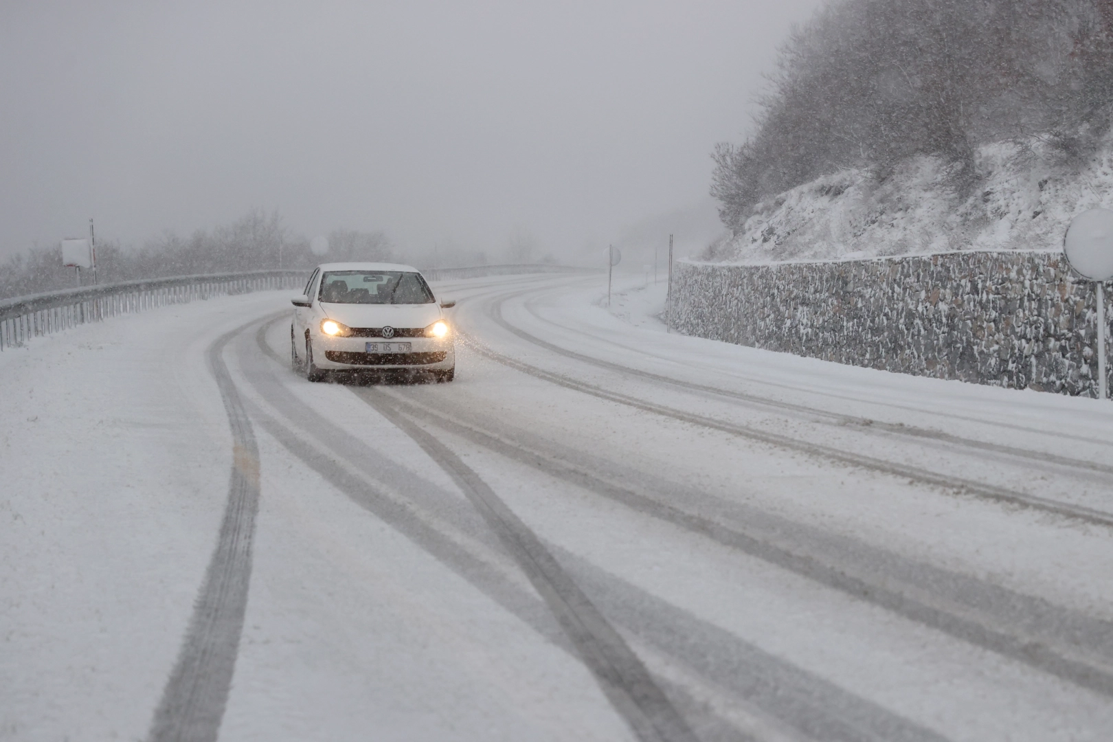 Demirköy ilçesinin yüksek kesimleri ile Bulgaristan'a ulaşımın sağlandığı Dereköy Sınır Kapısı yakınlarında iki gündür etkili olan sağanak yerini kar yağışına bıraktı.