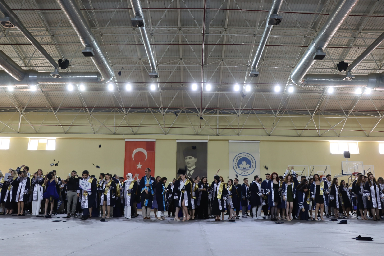 Öğrenciler keplerini havaya atarak mezuniyetlerini kutladı.