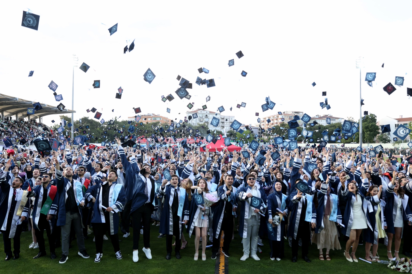 Törenin sonunda mezuniyet andını okuyan 3 bin 550 öğrenci, keplerini havaya atarak mezuniyeti kutladı.