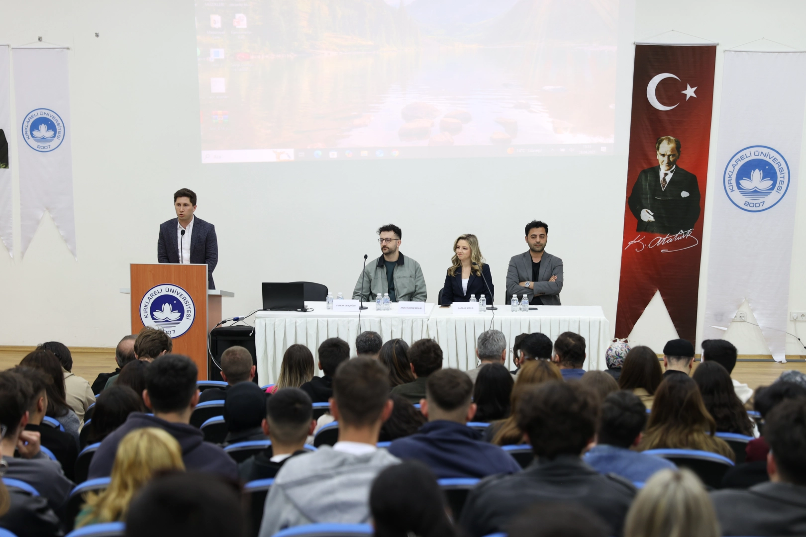 Sosyal Bilimler Meslek Yüksekokulu tarafından Kayalı Kampüsü'nde düzenlenen etkinlikte, Anadolu Ajansı (AA) İş Dünyası Haberleri Müdürü Furkan Gençoğlu, medya sektörü ve haber üretim süreçleri hakkında bilgi verdi.