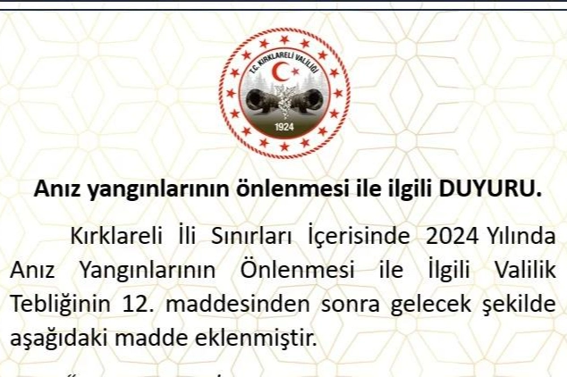 Açıklamada, "Rüzgarların kuvvetli esmeye devam etmesi ve yüksek hava sıcaklıkları beklendiğinden orman ve anız yangınlarına neden olabilecek davranışlardan uzak duralım. Anız yakmayalım, atıkları toplayalım, izmarit atmayalım. Gelişi güzel ateş yakmayalım." ifadesine yer verildi.