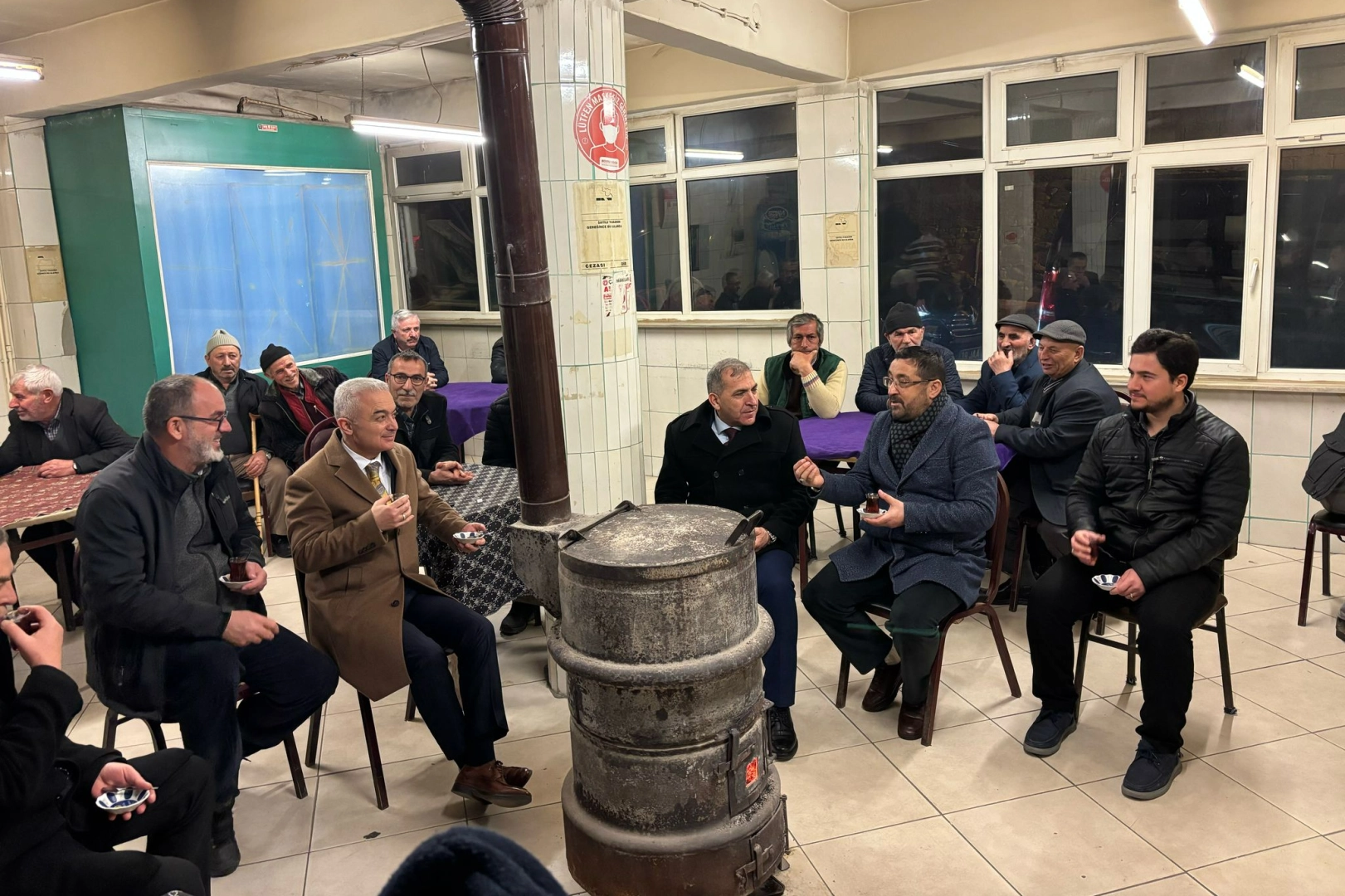 Turan, ardından köy kahvehanesinde vatandaşlarla bir araya geldi.