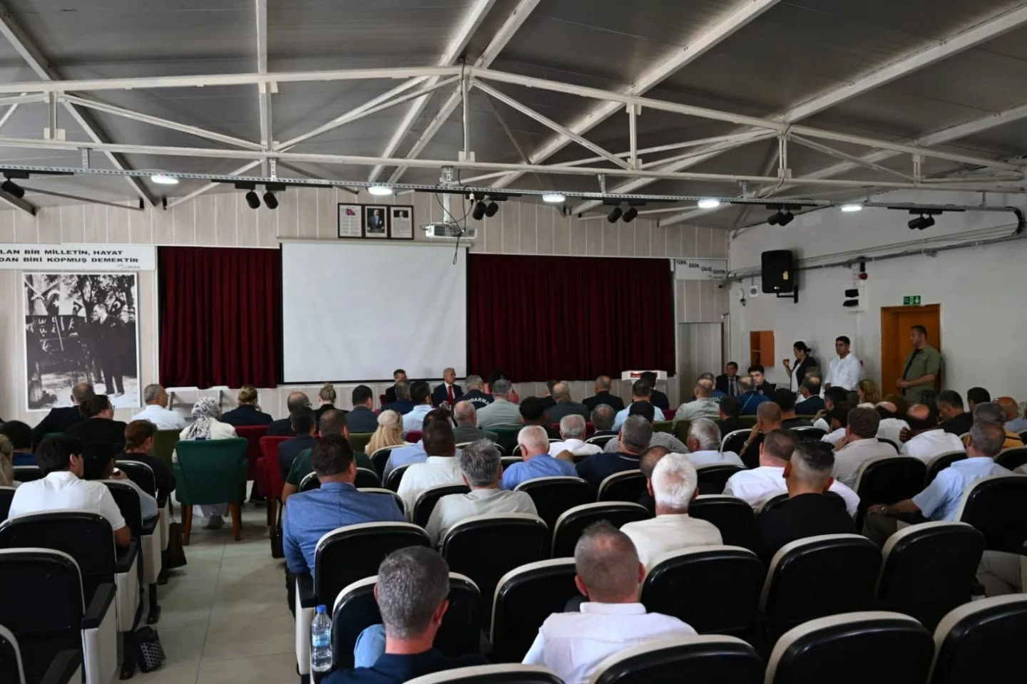 Toplantıya, Kaymakam Tamer Orhan, İl İdare ve Denetim Müdürü Emine Belma Arslantaş, kurum müdürleri ve muhtarlar katıldı.