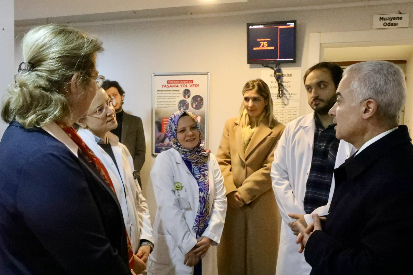 Ardından aile hekimleri ve sağlık personeli ile sohbet eden Turan, sağlık çalışanlarının gece gündüz demeden görev yaptıklarını söyledi.