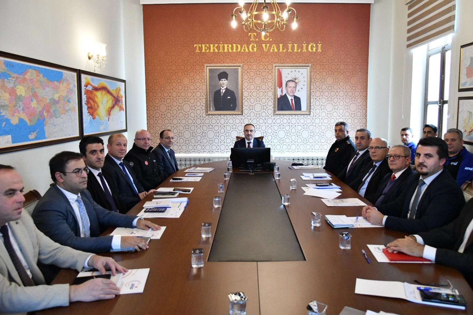 Tekirdağ Valilik toplantı salonundaki toplantıda, kentte meydana gelebilecek kar yağışı ve don olaylarında muhtemel zararların önlenmesi, azaltılması ve müdahale çalışmalarının daha etkin ve verimli yapılabilmesi konuları görüşüldü.