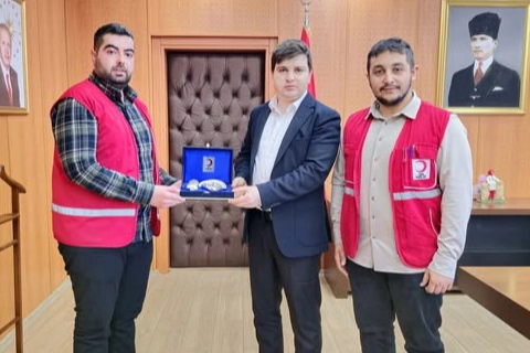 Ziyaretin sonunda Kızılay görevlileri, Kaymakam Ayte’ye günün anısına hediye takdim etti.