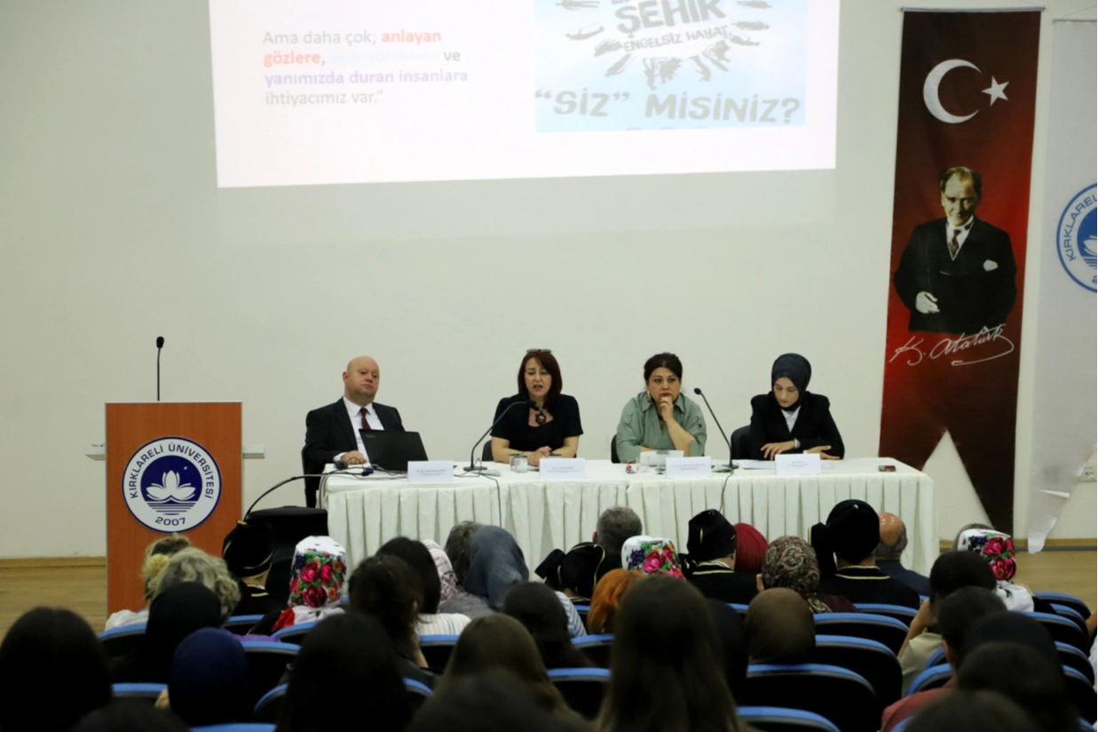 Konferansta, KLÜ Engelsiz Üniversite Koordinatörü Dr. Öğr. Üyesi Serkan Akten, Fen Edebiyat Fakültesi Felsefe Bölümü Öğretim Üyesi ve Kırklareli Otizm Derneği Başkanı Dr. Öğr. Üyesi Eylem Yolsal Murteza, Milli Eğitim Müdürlüğü Rehberlik ve Araştırma Merkezinde görevli psikolojik danışman Ayfer Dutoğlu Dündar ile Aile ve Sosyal Hizmetler İl Müdürlüğünde görevli sosyal hizmet uzmanı Büşra Fidancı konuşma yaptı.