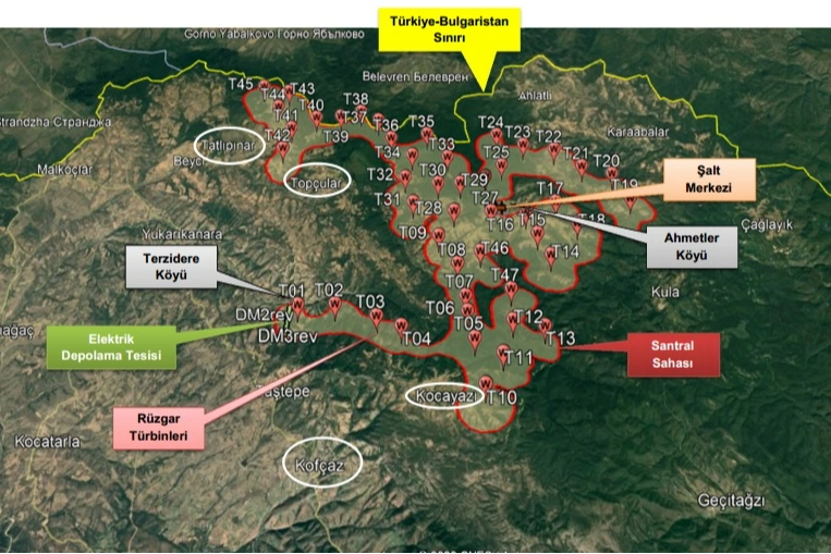 Proje santral alanının Kırklareli merkeze kuşuçuşu yaklaşık 23 km, Kofçaz merkeze kuşuçuşu yaklaşık 4 km mesafede kaldığına yer verilen dosyada; 42 nolu türbinin Topçular köyüne kuşuçuşu yaklaşık bin 470 metre, 41 nolu türbinin Tatlıpınar köyüne kuşuçuşu yaklaşık bin 330 metre, 10 nolu türbinin Kocayazı köyüne kuşuçuşu yaklaşık 879 metre, 27 nolu türbinin Ahmetler köyüne kuşuçuşu yaklaşık 879 metre, 1 nolu türbinin ise Terzidere köyüne kuşuçuşu yaklaşık 820 metre mesafede yer aldığı belirtildi. Proje ile yıllık 560 milyon kWh elektrik üretimi yapılmasının planlandığı belirtilen dosyada, üretilecek enerjinin 6999,67 hektarlık RES santral sahası içerisinde 23,46 hektarlık alanda kurulacak 140 Mwe / 140 MWh kapasiteli lityum-iyon teknolojili elektrik depolama tesisinde depolanacağı ifade edildi.