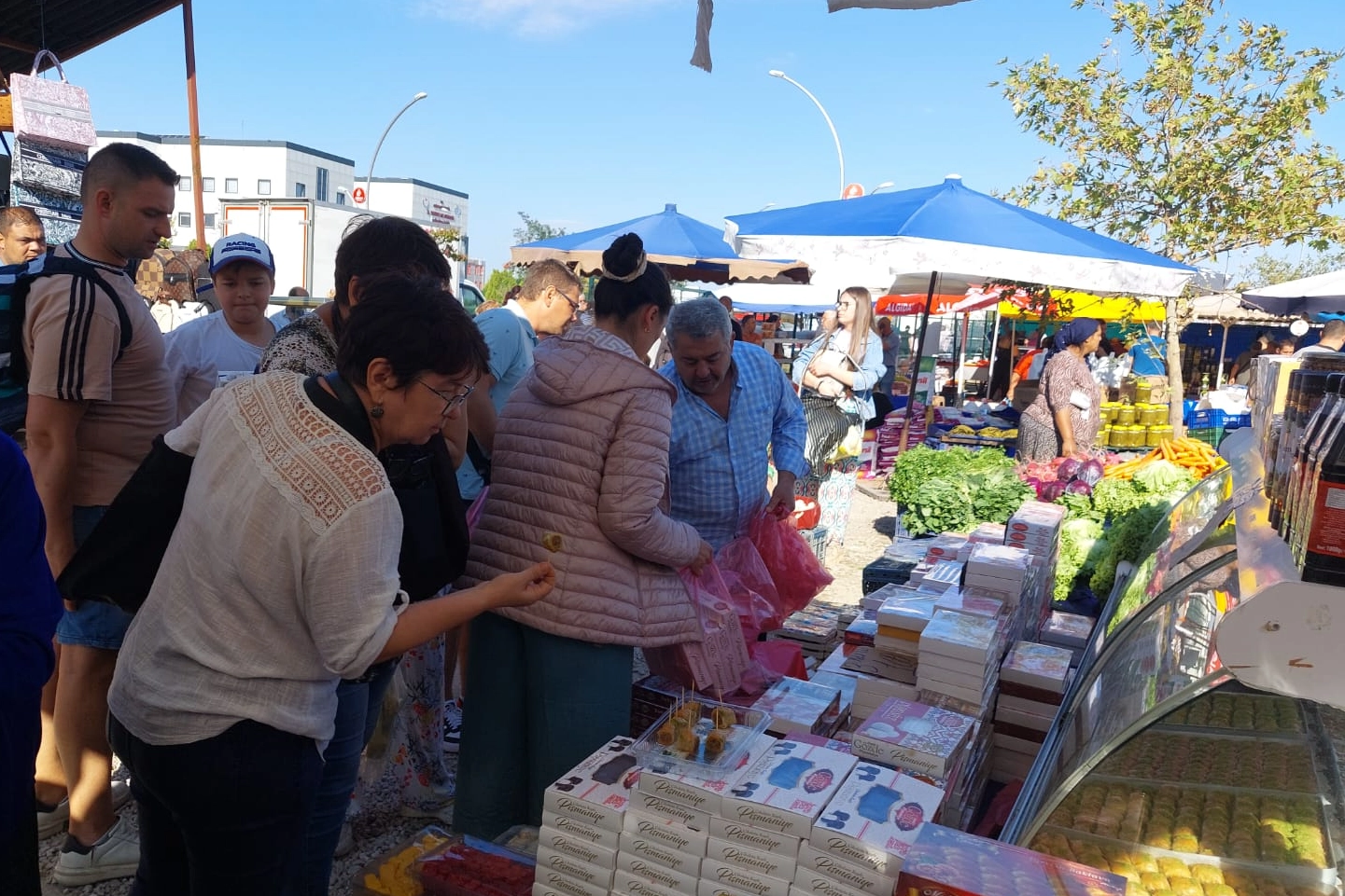 Edirne’de Cumartesi Pazarı’nda Bulgaristan vatandaşları baklava almak için birbirleriyle yarışıyor. Kilo kilo, paket paket baklava alan turistlerin, Türk baklavasını çok sevdikleri ifade edildi. Pazar esnafı Mustafa Sakallı “Türk baklavasına ilgi büyük” dedi.