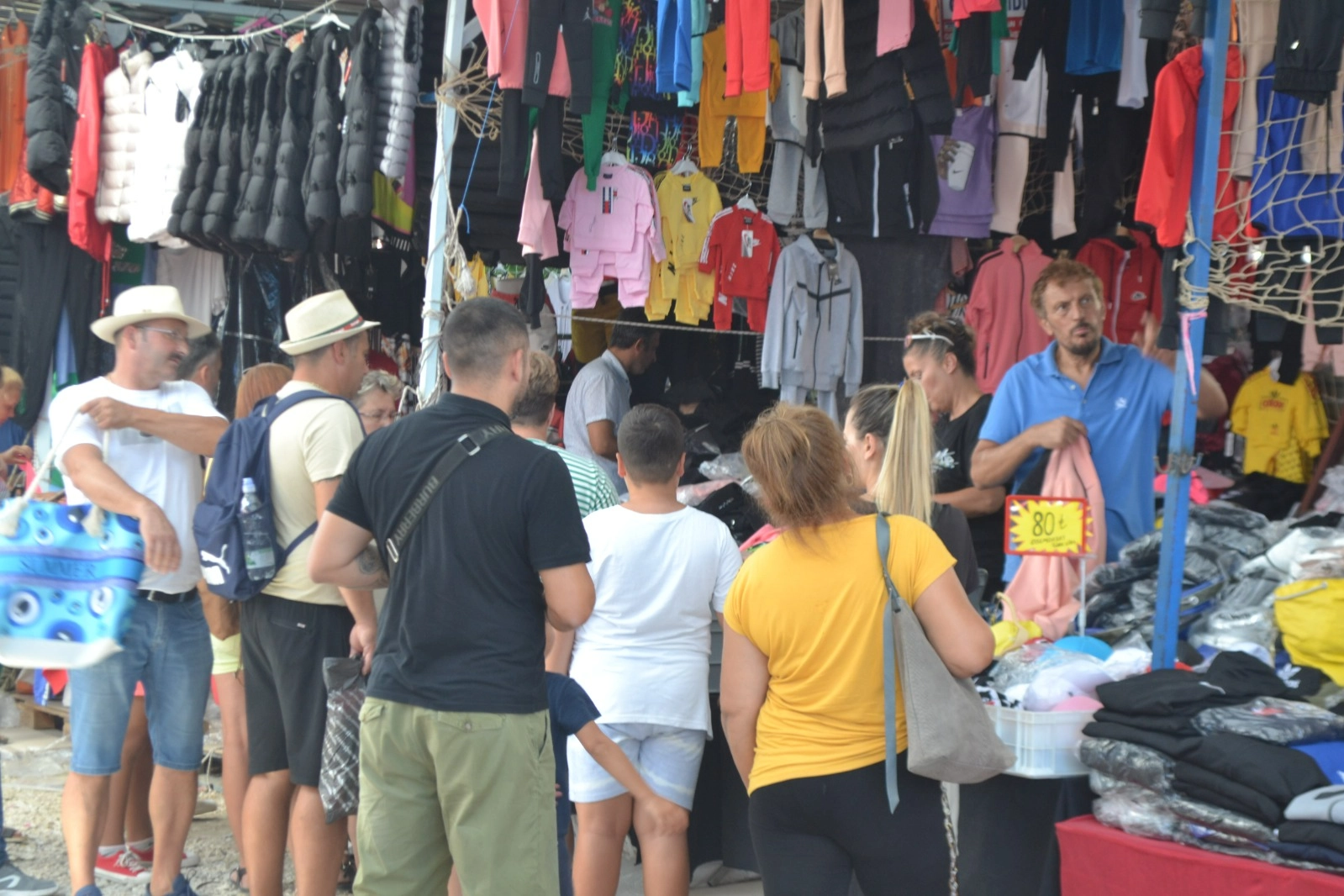Edirne Cumartesi Pazarı’nda geçtiğimiz haftalara göre giyim ürünlerinde yabancı turistlerden oluşan müşteri yoğunluğu yaşandı. Yunan ve Bulgar turistlerinin erken saatlerde başlayan alışveriş mesaisi esnafın yüzünü güldürüyor.