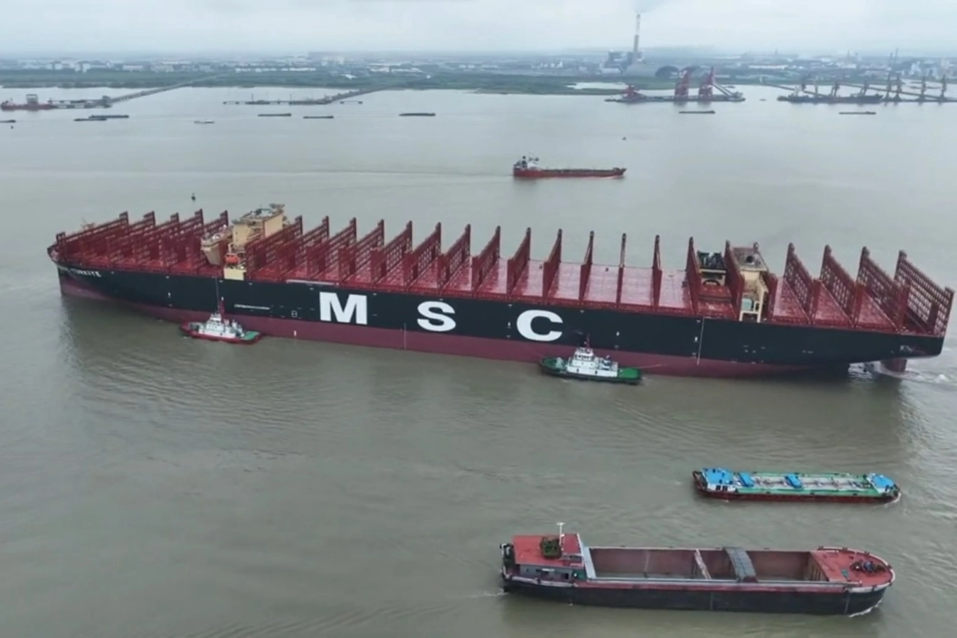 MSC tarafından Çin'de inşa ettirilen 24 bin 346 konteyner taşıma kapasiteli gemi, 80 metre yüksekliğe ve 400 metre uzunluğa sahip.