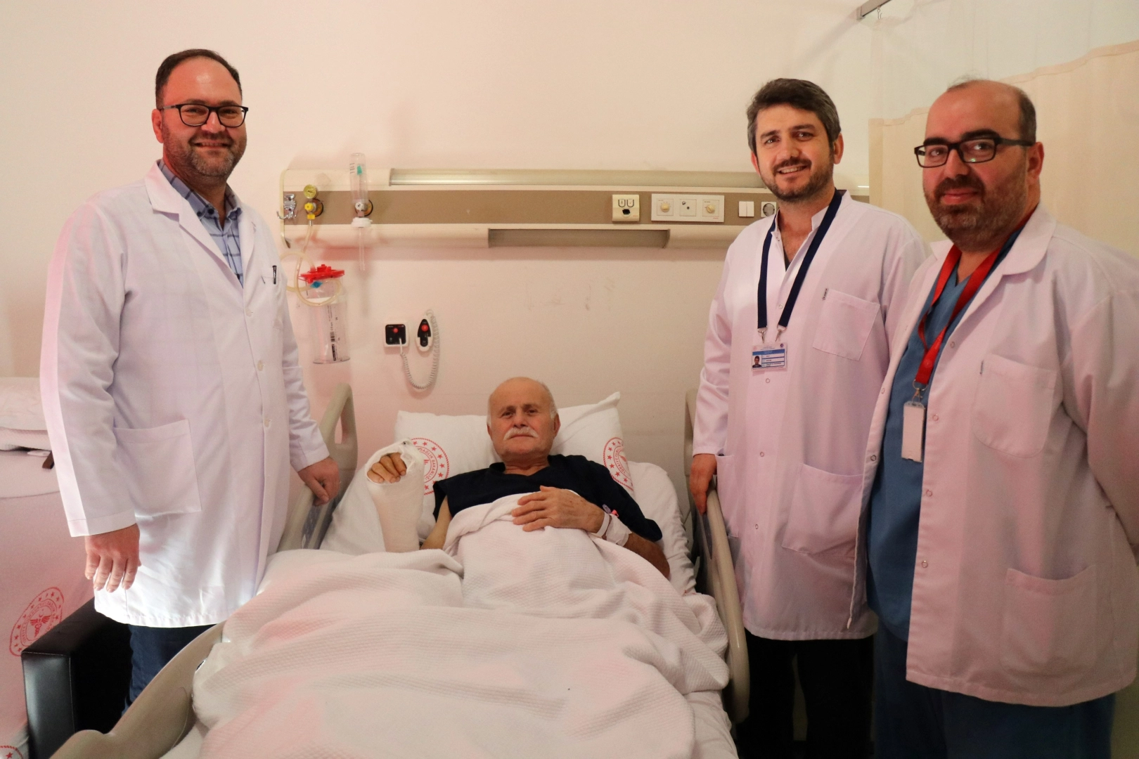 Olay, 1 Aralık 2024 tarihinde Akyazı ilçesi Taşburun Mahallesi’nde meydana geldi. 3 çocuk babası Nizam Acar (75), evinin önüne getirdiği fındık dallarını kesmeye başladı. Acar, bir anlık dikkatsizlik neticesinde sağ elini kullandığı şerit testereye kaptırdı. Acar’ın sağ eli, bilek kısmından koptu. Talihsiz adamın çığlığı üzerine durumu fark eden çevredekiler, Acar’ı hastaneye yetiştirdi. Sakarya Eğitim ve Araştırma Hastanesi’ne sevk edilen Acar, ameliyata alındı. El Cerrahisi Uzmanı Kutay Yılmaz ve ekibi tarafından acil ameliyata alınan Nizam Acar’ın kopan eli, zamana karşı yarışan doktorların 5 saatlik müdahalesi ile yerine dikildi. Başarılı operasyon neticesinde uzuv kaybı riskinden kurtularak sağlığına kavuşan Acar, yaklaşık 1 aylık tedavisinin ardından taburcu edildi. Sakarya Eğitim ve Araştırma Hastanesi’nde El Cerrahisi Uzmanı olan Kutay Yılmaz, “1 ay önce Nizam bey, elinden yaralanma şikayeti ile acil servisimize başvurdu. Kendisi gelmeden şerit testere ile el bileği seviyesinden kesi olarak. Hızlıca ameliyatını planladık ve operasyona aldık. 5 saat süren başarılı bir ameliyat sonrasında kopan eli yerine tekrar dikildi. Hastamız yoğun bakımdan çıktıktan sonra yara bakımı ve genel durum kontrolleri yapıldı. Durum stabil olduktan sonra 15’inci gün fizik tedavisine başladık. Fizik tedavisi de başarı ile devam ediyor, artık tedavinin sonlarına yaklaşıyoruz. Tabii ki fizik tedavi daha uzun bir süre daha devam edecek. Ama şuan için her şey yolunda gidiyor ve taburcu etme aşamasındayız. Total bir kesi olduğu için sinirlerin adapte olması, kasların yeniden güçlenmesi zaman alacaktır. Hastamızın yaklaşık 6 ay veya bir seneye kadar elini tekrar tam anlamı ile aktif şekilde kullanabileceğini düşünüyorum. Bu tür vakalara karşı uyarılarda bulunan Yılmaz, “Sakarya, sanayi bölgesi olduğu için bölgemizde bu tarz yaralanmalar ile çok sık karşılaşıyoruz. Daha öncesinde de buna benzer karşılaştığımız vakalardan da başarılı sonuçlar aldık. Bu konudaki iş güvenliği önlemlerine dikkat etmek ve acele etmemek, yaralanmanın oluşmasını önlemek tedavi etmekten daha kolay olacaktır” diye konuştu. Yaşadığı olayı anlatan Nizam Acar, “Evimin önüne bir hafta öncesinden fındık dallarını getirmiştim. Orada çirkin görüntü oluşturuyordu, dalları kesip bodruma doldurmak istedim. Motoru çalıştırdım, başladım kesmeye hanımım da yardım ediyordu. Geriye 3-5 tane kalmıştı, hanıma sen içeri git dedim. Hanımım merdivene 1-2 adım attı o esnada elimi kaptırmışım, bir baktım elim yerde. O an acı ile bağırmaya başladım, mahallenin imamı yetişti. Hemen sağlık ekiplerine durumu bildirmiş. Ambulansla hastaneye gidene kadar olan süreci hatırlıyorum ama daha sonrasını hatırlamıyorum. Ameliyattan çıktıktan 2 gün sonra da kendime gelemedim, yoğun bakımdaydım. Kutay hocamız ve ekibi başta olmak üzere buradaki sağlık personelinden, temizlikçisine varana kadar herkesten Allah razı olsun” şeklinde konuştu. Başarılı operasyonun ardından eline kavuşmanın mutluluğunu yaşayan Acar, “Cam sektöründen geldim becerikliyim, her türlü şeyi yapabiliyorum camdan. Hep sağ el ile yapıyorum tabi bu işleri de, elimi ilk yerde gördüğüm zaman ‘tamam dedim artık benim sonum geldi.’ Burada kendime geldikten sonra birkaç gün o odunlar ile uğraştım rüyamda. Çok etkiledi beni bu durum. Parmağımı tekrar oynatınca dünyalar benim oldu. Aşırı derecede sevindim, elsiz kalmadım ya düğmeni ilikleyemezsin o olmadıktan sonra. Allah’a şükür doktoruma tekrar teşekkür ediyorum. Doktorumu köye de bekliyorum bu elimle ona mangal yapacağım. Daire bu yerde olan bir makine, testeresi var dönüyor ve hiçbir koruması yok. Biraz dikkatsizlik hemen kolu yakalıyor. Bu makineyi kullanan diğer kişiler de çok dikkat esinler. Kimi parmağını, kolunu, ayağını koparmış. Ayağın takılıp üzerine düşsen ikiye böler insanı” ifadelerini kullandı. Nizam Acar’ın eşi Aysel Acar ise, “Eşim, evimizin bahçesinde odun keserken, yuvarlak şerit testereye kaptırdı elini. O arada ben bağırmaya başladım. Cami imamı ve çevredekiler hemen hastaneye yetiştirdiler. 1 aydır hastanede yatıyoruz buradaki herkese çok teşekkür ediyoruz. Allah’a çok şükür bugünümüzü gördük. Şuanda iyiye gidiyor inşallah” dedi.