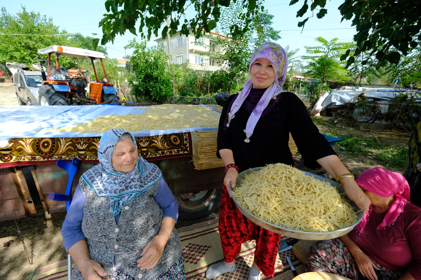 Kışlık ürünleri hiçbir zaman hazır almadıklarını anlatan Yıldırım, "Köyde herkes kendi ürününü kendi yapıyor. Hazır aldığın zaman mesela mağazalardan tadı yok. Ama kendi yaptığında ev yapımı tadı var. Her şeyini biliyorsun, usulünü biliyorsun yumurtasını, suyunu koyuyorsun ne yapacağını biliyorsun. Onun için kendimiz yapıyoruz. Daha iyi bizim için sağlıklı."