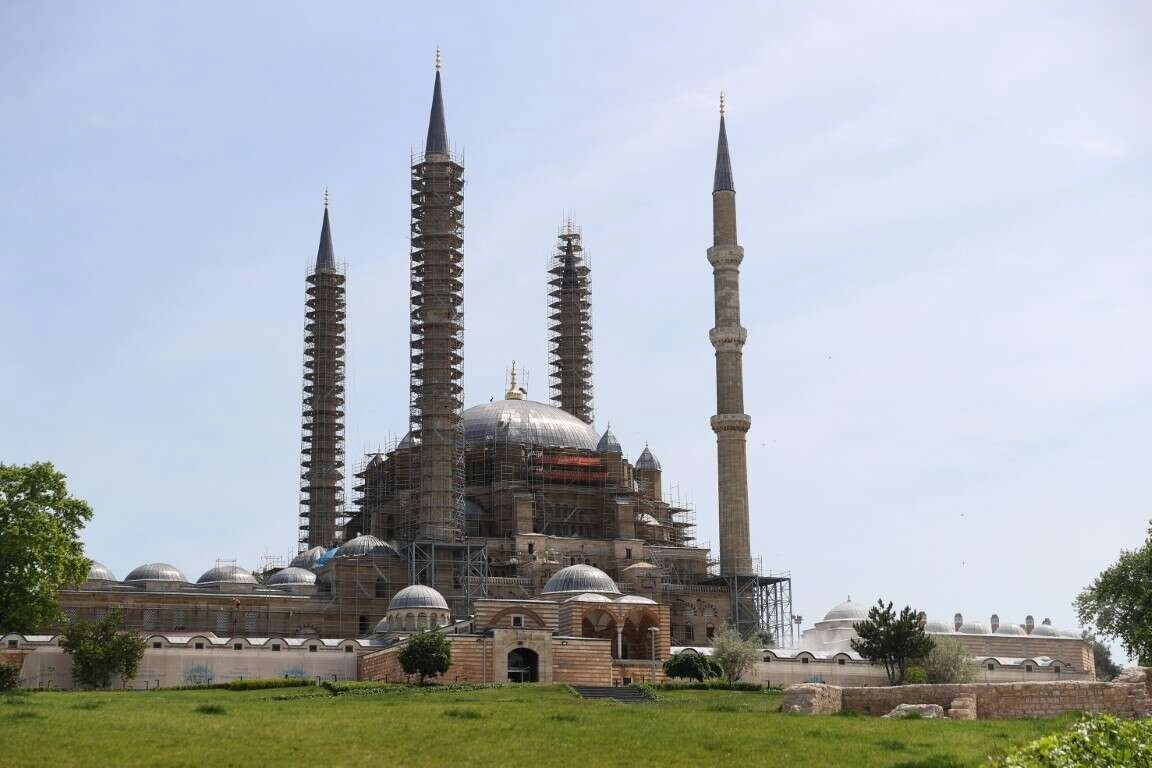 Kapsamlı restorasyondan geçirilen Selimiye Camisi'nin ana kubbe aleminin montajı da tamamlandı.