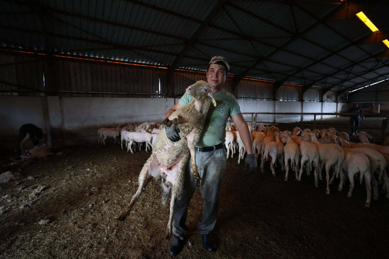 Halk arasında "kırkımcı" olarak bilinen, çiftlikleri gezerek koyunların yünlerini makinelerle kesen ekipler, Kurban Bayramı'na sayılı günler kala kurbanlık satışı yapılan çiftliklerde mesailerini sürdürüyor.