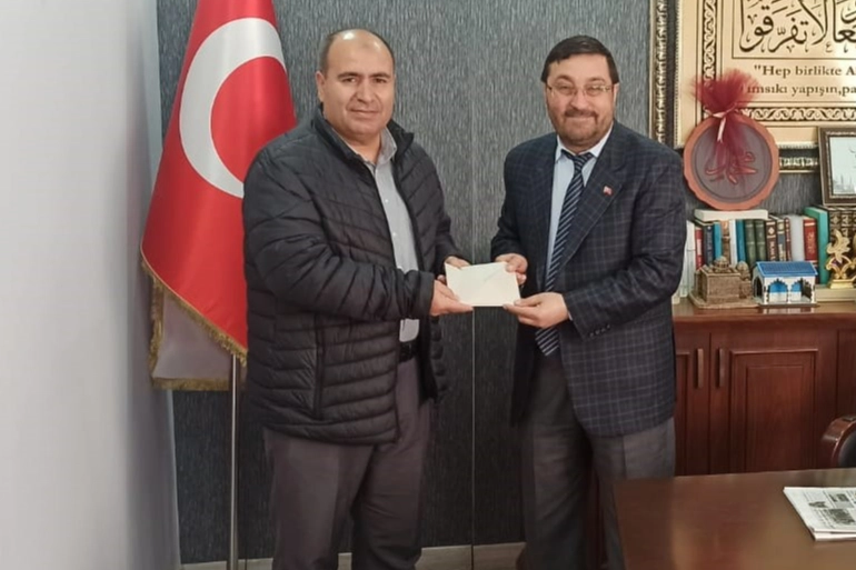 Hakan Eriş’in bağışını kabul ederek bağış makbuzunu kendisine teslim eden Kırklareli İl Müftüsü ve TDV Şube Başkanı Yusuf Eviş, Eriş’e bağışı için teşekkür etti.