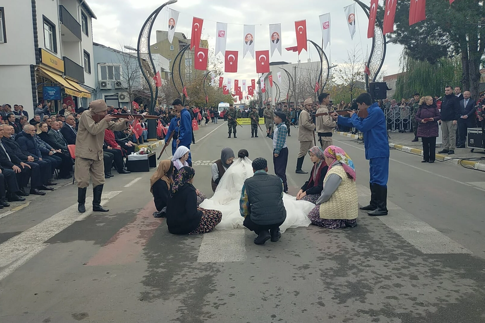 Edirne’nin Lalapaşa ilçesinde Atatürk Anıtı'na çelenk sunma töreniyle başlayan kutlamalar, Cumhuriyet Caddesi'nde gösterilerle devam etti. Lalapaşa Çok Programlı Anadolu Lisesi öğrencilerinin hazırladığı' Kurtuluş Kahramanlarımız' gösterisi ilgiyle izlendi. Öğrencilerin savaş anını canlandırması ve kurtuluş gelinini kurtarmaları, izleyenlerden alkış aldı.